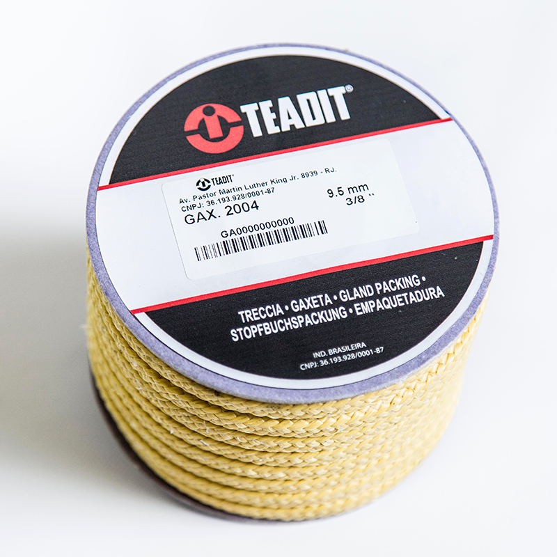 磨蝕性介質芳綸或酚醛纖維等材料能提供理想的耐機械性能.TEADIT Style 2004 對角編織芳綸纖維浸漬PTFE和高溫硅油盤根。