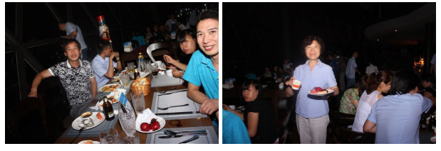 各部門總結(jié)了上半年的工作及下半年的計(jì)劃后,我們移師東方明珠,享受高空餐廳用餐的樂趣。