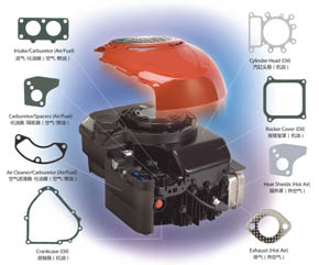1、空氣濾清器(Air cleaner gasket) 2、化油器(Carburetor gasket) 3、進氣口(Intake gasket) 4、氣門室蓋(Valve cover gasket) 5、通風(fēng)孔(Breather gasket) 6、呼吸槽(Breather passage gasket) 7、曲軸箱體(Crankcase gasket) |